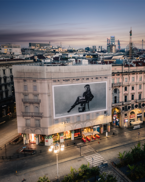 Sauvage111 set up some of the key visuals of AMI latest campaign on one of the largest and most iconic OOH banners in Milan, Italy, right in front of the Duomo.